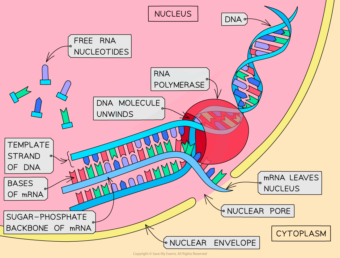 —Transcription– DNA is transcribed and an mRNA molecule is produced