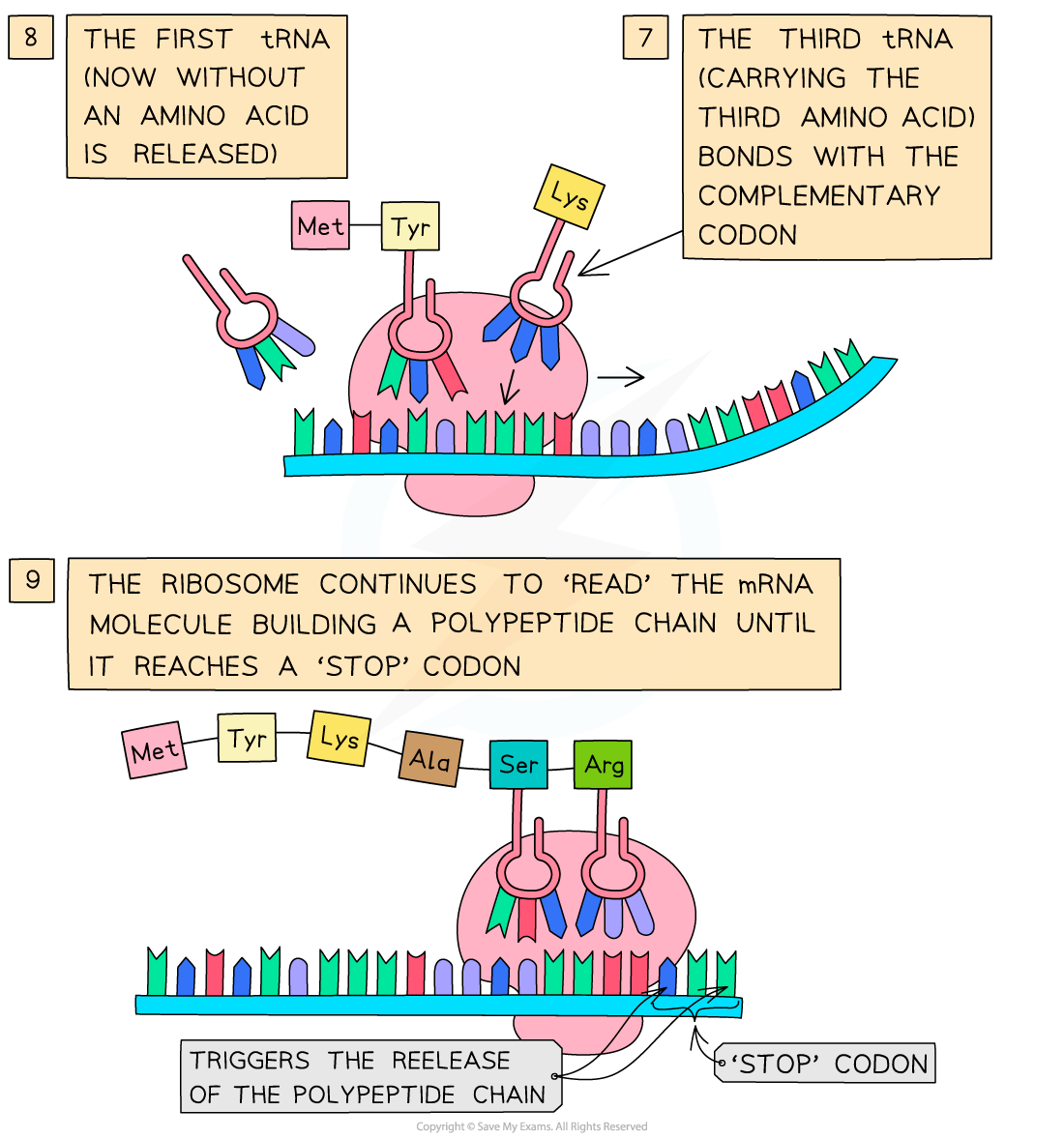 – this acts as a signal for translation to stop and at this point the amino acid chain coded for by the mRNA molecule is complete -This amino acid chain then forms the final polypeptide