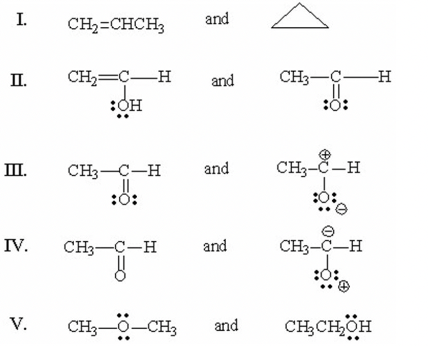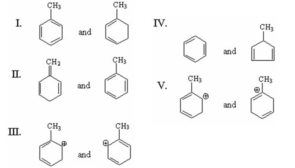 Which of the following pairs are resonance structures?