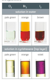 In redox reactions, halogens react by gaining electrons. As you go down the group
