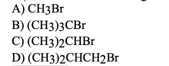 Identify the alkyl halide that reacts the fastest in a SN2 reaction.
