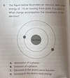 When electrons transition from a higher energy state to a lower energy state, they will experience photon emission.