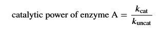 Catalytic power is the ratio of the catalyzed reaction rate constant, 𝑘cat, to the uncatalyzed reaction rate reaction constant, 𝑘uncat