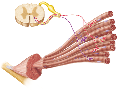 Each neuron shown in this figure innervates a group of muscle fibers. What is the term for a group of muscle fibers and the single neuron that innervates them?