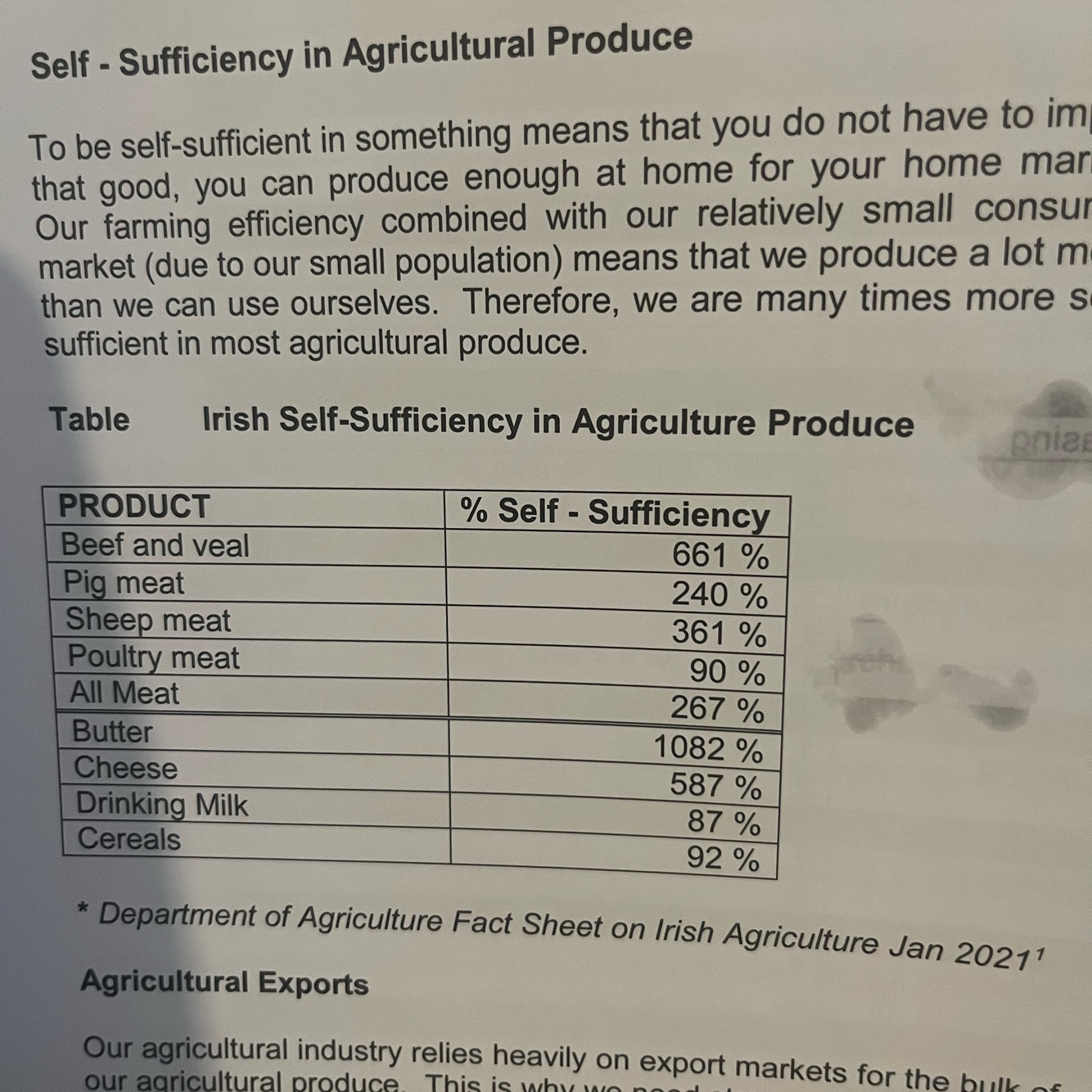 Irish self sufficiency in Agriculture produce image:
