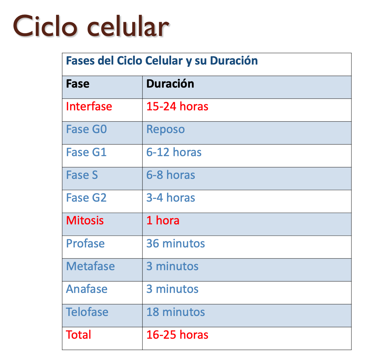Duración de las fases del ciclo celular