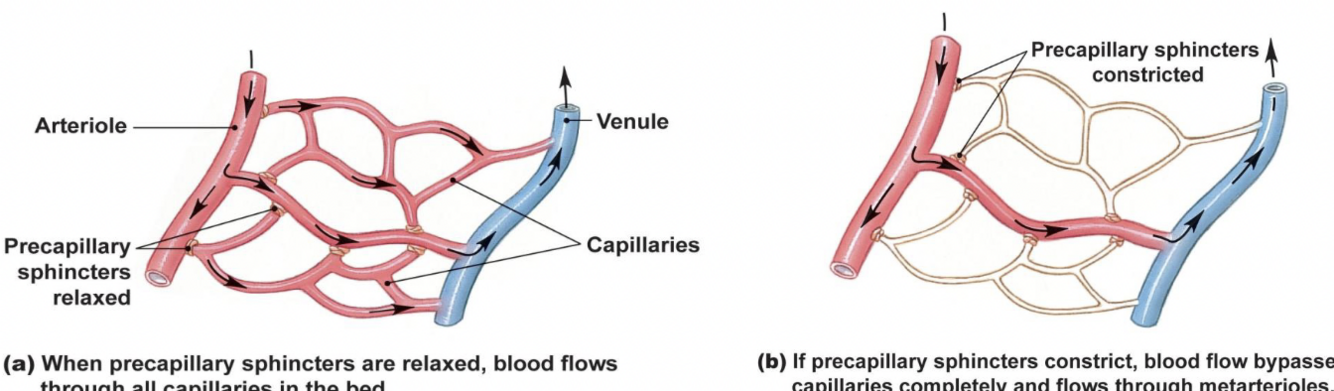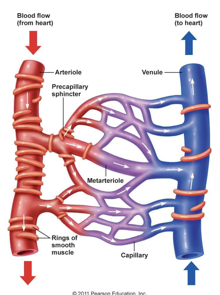 Arteriole, pre-capillary sphincter, smooth muscle, meta arteriole, venule