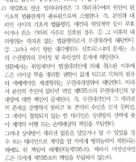 할 수 있는 대리권을 부여하고 乙과 위임계익을 체결하였다. 친권자 을의 부모는 乙이 책임을 부딤하는 것을 염