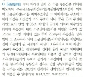 무권대리행위임을 주장하여 그 소유권이전등기의 말