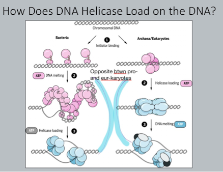 How does DNA helicase load on the DNA? Differences in prokaryotes and eukaryotes