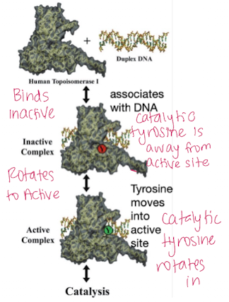 When it associated with DNA the enzyme is still inactive because the catalytic tyrosine domain is away from the active site