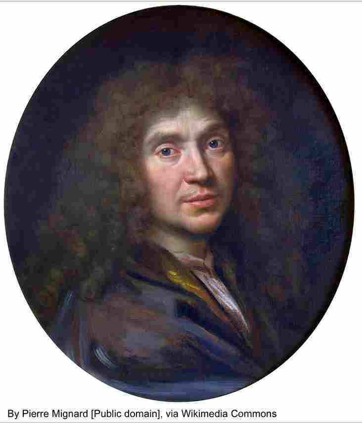 Molière’s real name was Jean-Baptiste Poquelin, and he was adored by Parisian aristocrats and the court of Louis XIV.