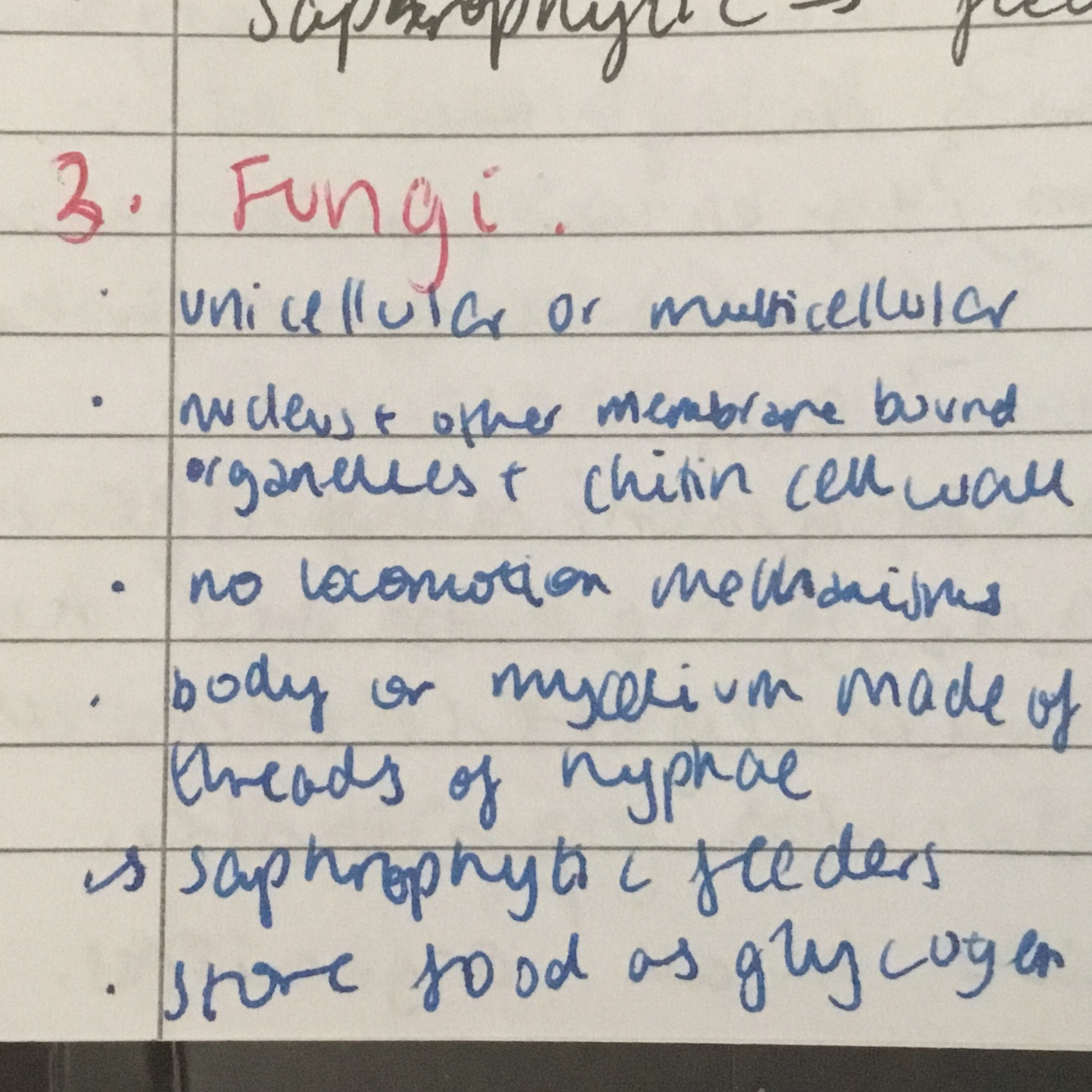 Saprotrophs -> feeding on decaying material e.g. can be parasitic e.g. fungi