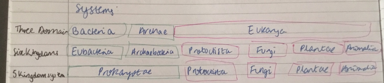 Systems in classification e.g, 6 kingdom vs 5 kingdom vs 3 domains