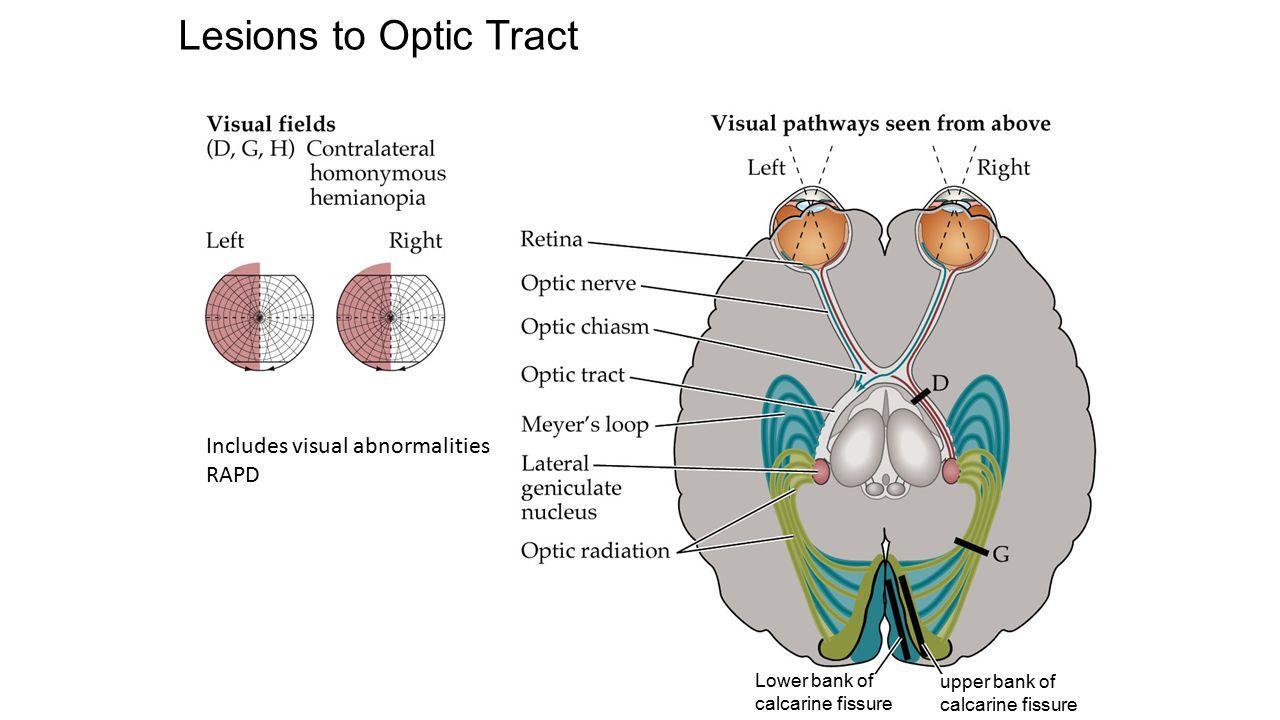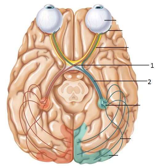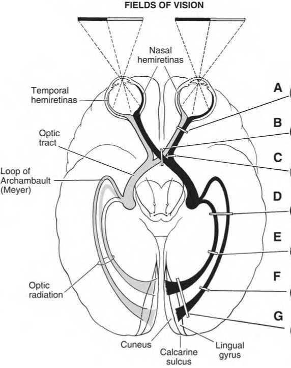 The temporal parietal optic radiation (the outer radiation strand) carry information from the superior part of the visual field The parietal optic radiation (the inner one) carries information from the inferior part of the visual field