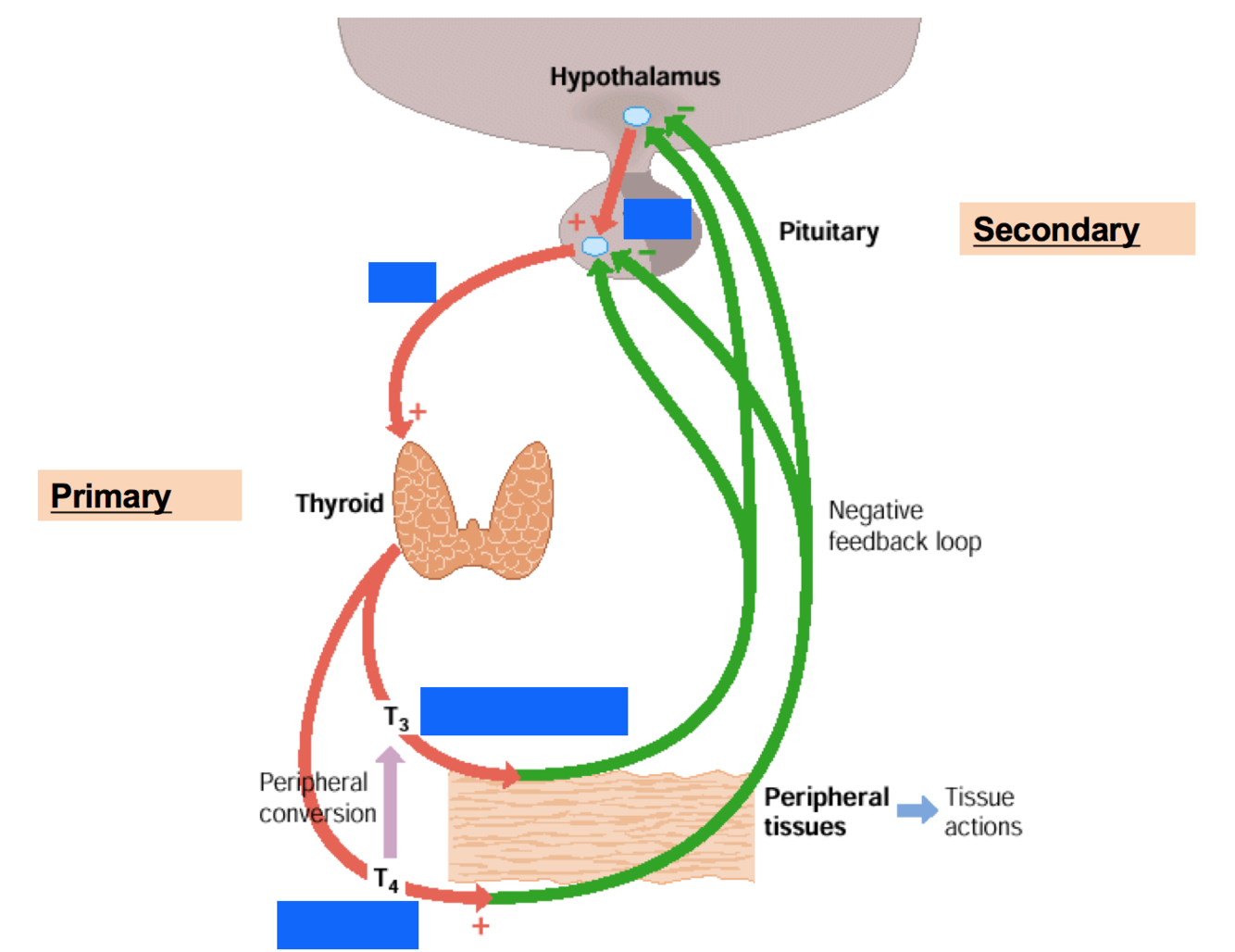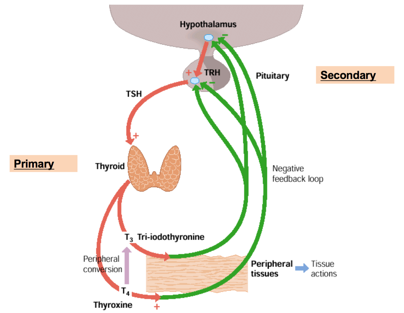 Abnormalities of levels of TSH & FT4 - used to determine which type of hypothyroidism