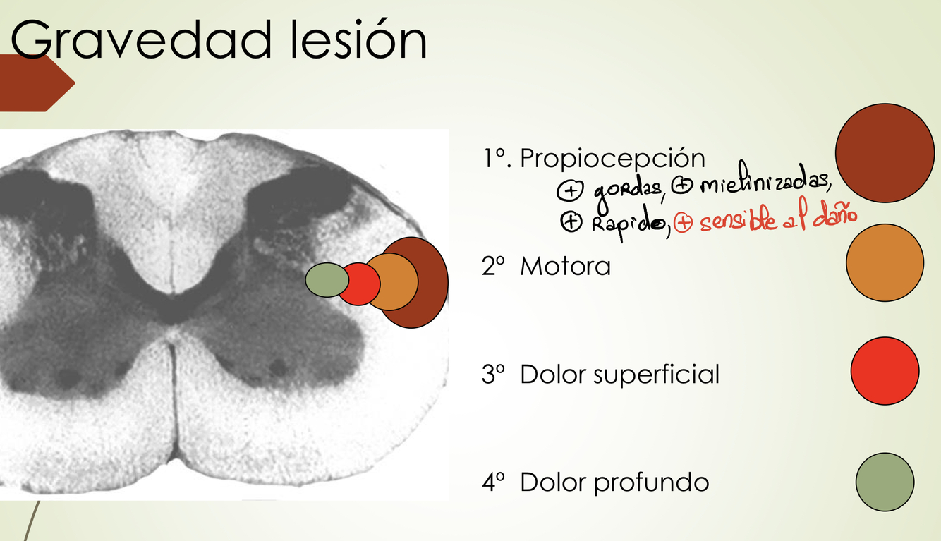 * Périda de nocicepción que se extiende el area medular dañada hacia la zona caudal