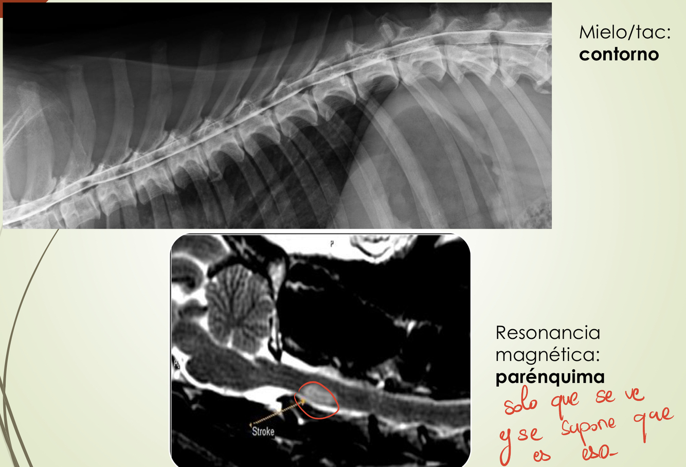 La mayoría de las veces no dan signos clinicos →Para confirmar que son la causa de los déficits : mielografia, mielotac o RM