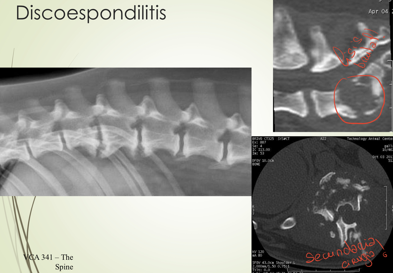 I : Discoespondilitis, mening(encefal)itis infecciosa/inflamatoria, meningitis que responde a corticoides