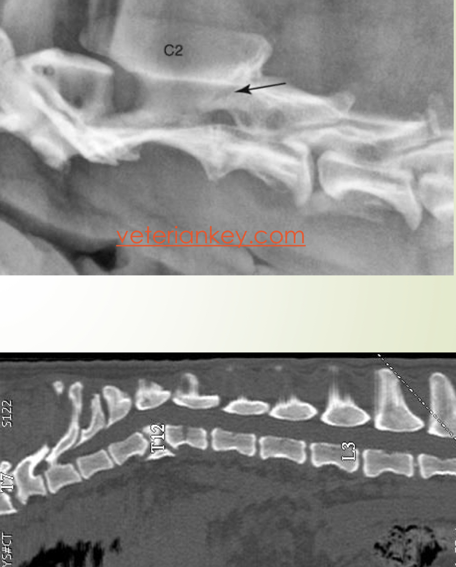 A : Malformaciones vertebrales : hemivertebra, espina bifida, subluxacion atlantoaxial