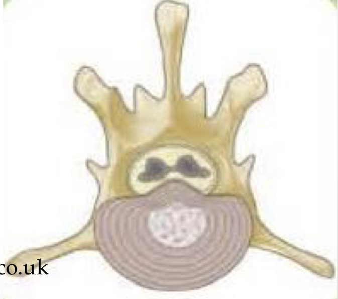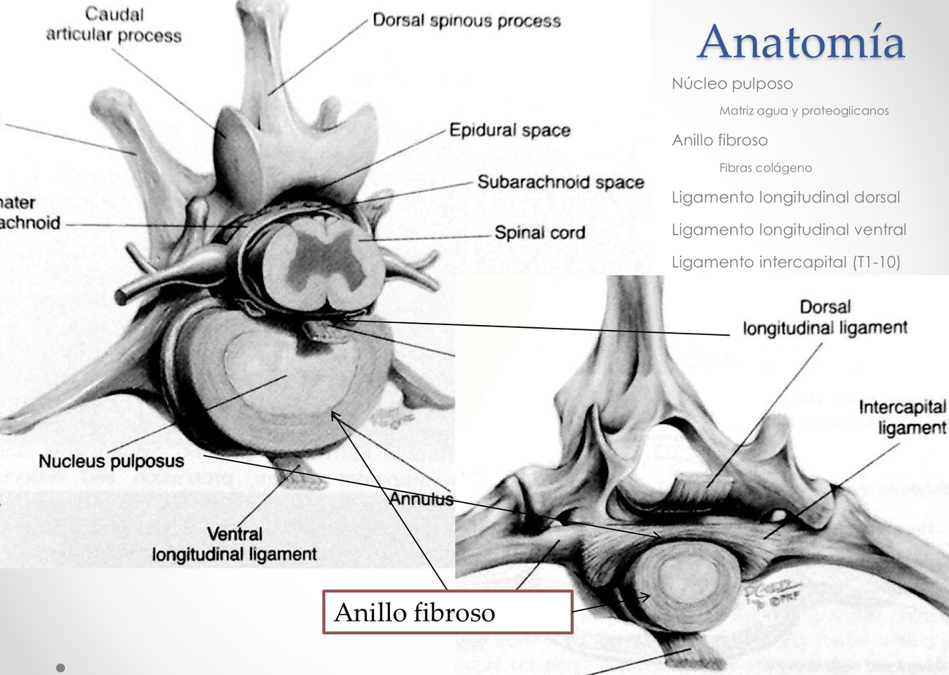 Rotura completa del anillo fibroso y extrusión del nucleo pulposo.