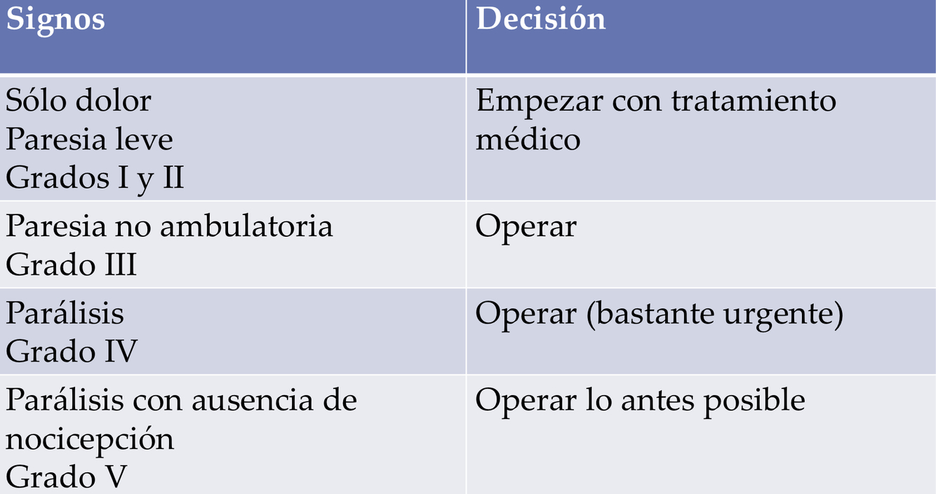* Inmobilizacion : si solo hay dolor, sin deficit neuro, 55% exito