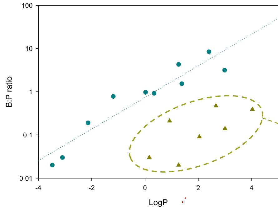 The ideal Log P for BBB permeability is between 1 - 3. So why is the following picture depicting drugs with optimal conditions for lipophilicity still have poor CNS uptake?