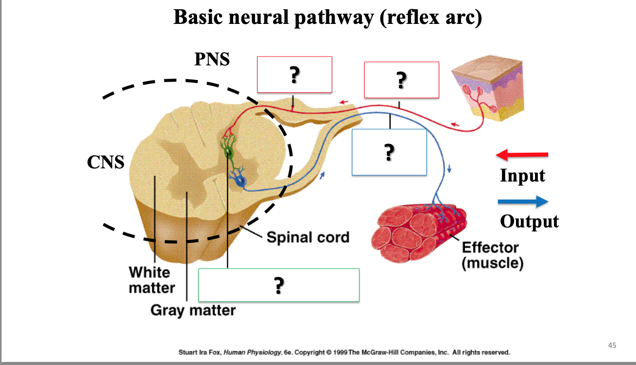 * Axon exits the CNS; synapses onto a ** ? ** in a * ? * (look at pic for more clarity)