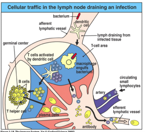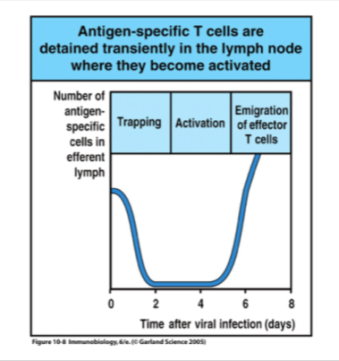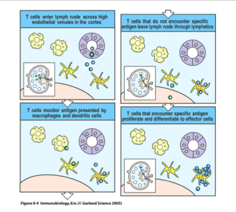 What is the process by which T cells enter the lymph node and generate into effector cells?
