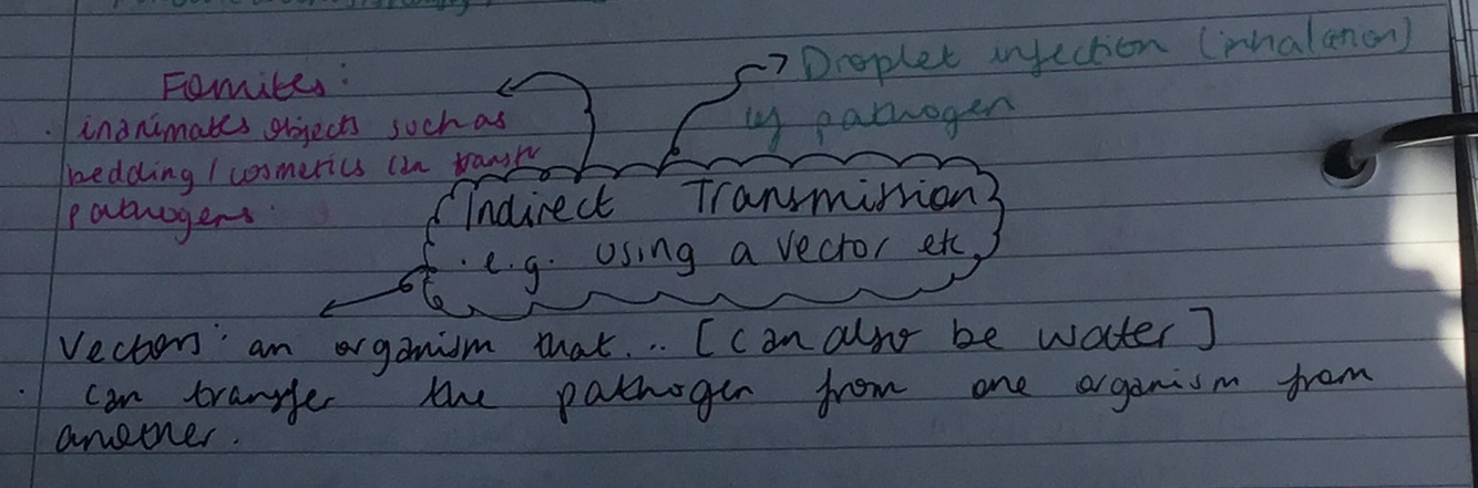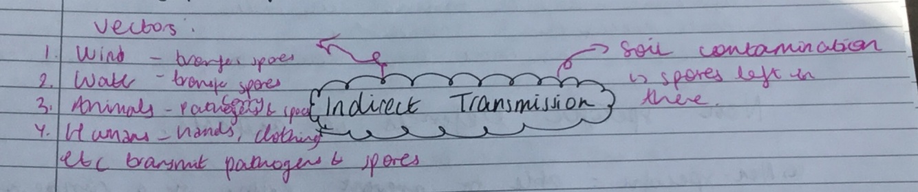 Ways of indirect transmission e.g. using a vector etc