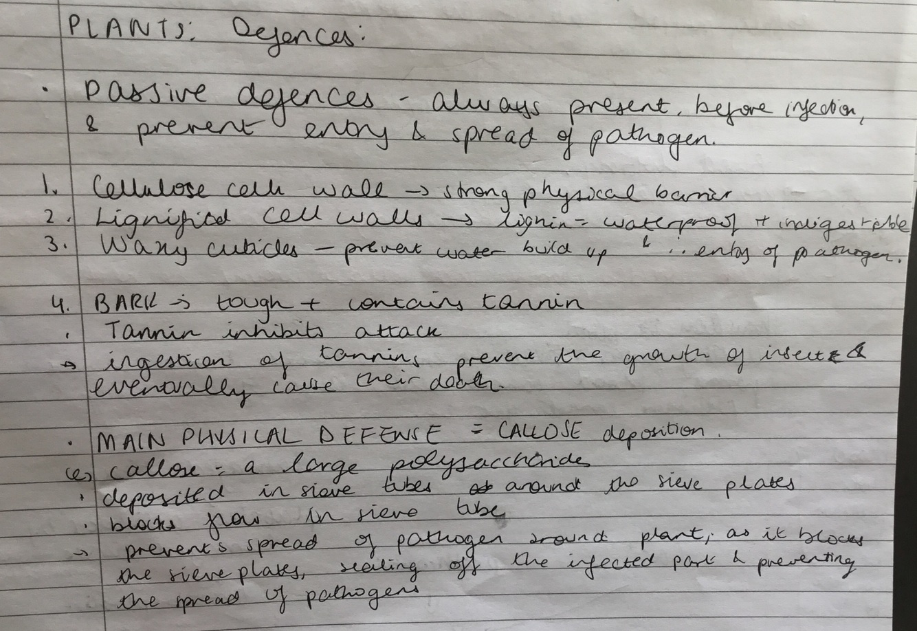 Examples of main physical plant defences