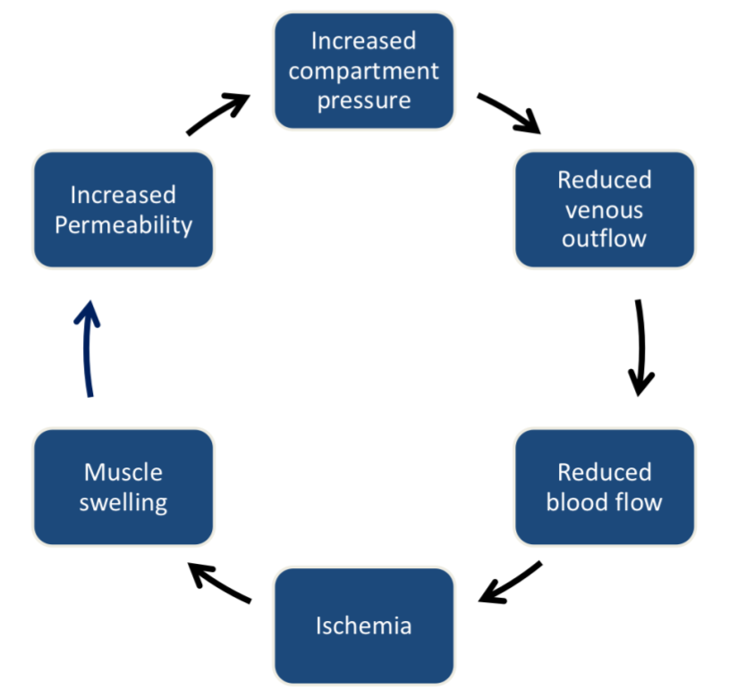 Describe the pathophysiology of compartment syndrome [9]