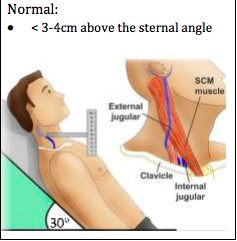 Low JVP is best seen in near supine position (hypovolemic pt)