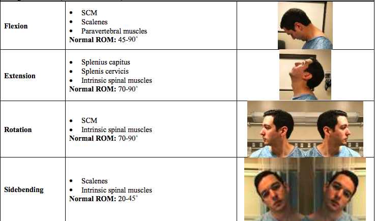 Rotation: 70-90° (SCM, intrinsic spinal ms.)