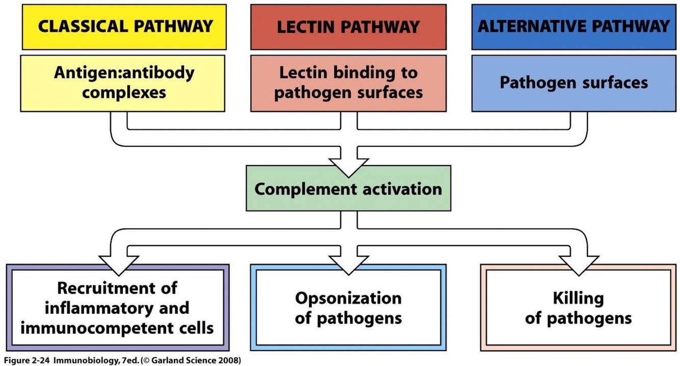 *3 pathways but same effector complement components just diff molecules for initiation & the way they act against pathogens