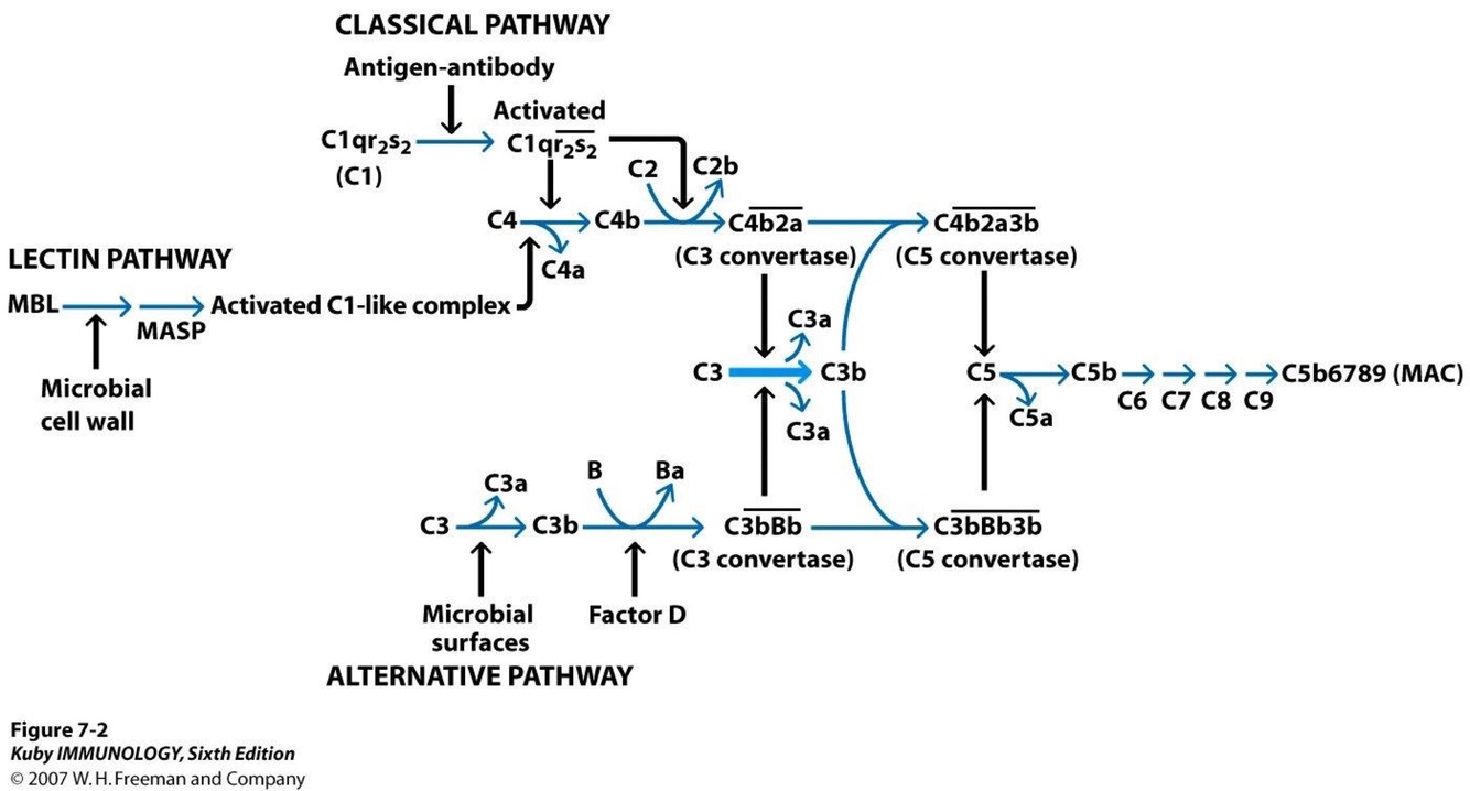 >C5 convertase generated by classical & lectin pathways & C5 convertase generated by alternative pathway start MAC formation