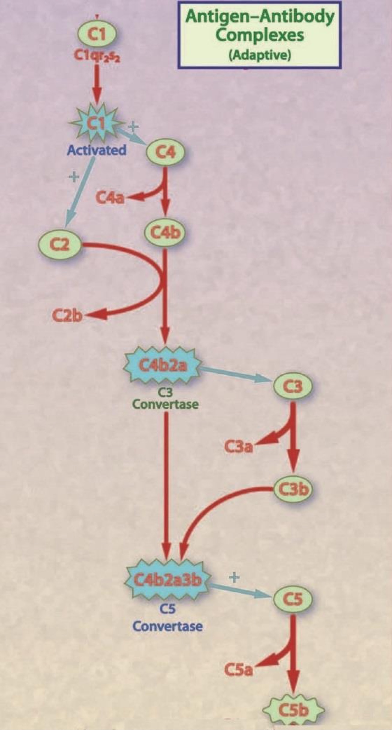 -C3 convertase cleaves C3 =