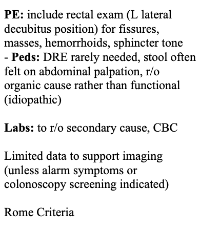 Describe the diagnosis of constipation