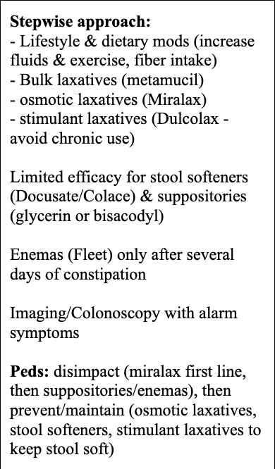 Describe the treatment of constipation