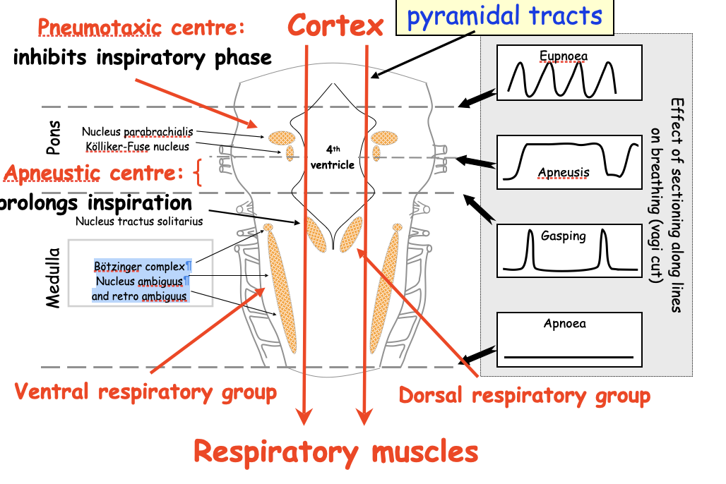 section above the pons = eupnoea, which is the normal pattern of breathing.