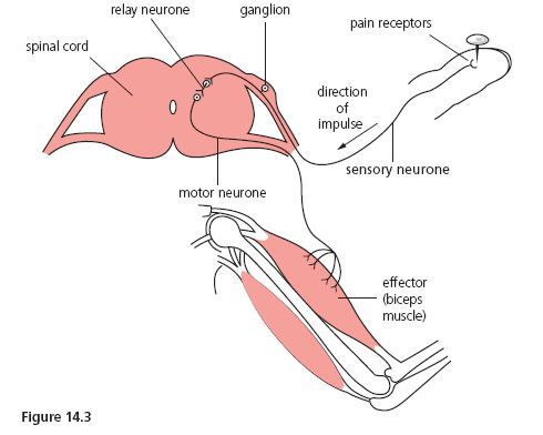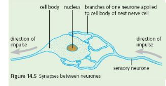At a synapse, a branch at the end of one fibre is in close contact with the cell body or dendrite of another neurone (Figure 14.5).