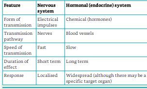 comparing nervous and hormonal system