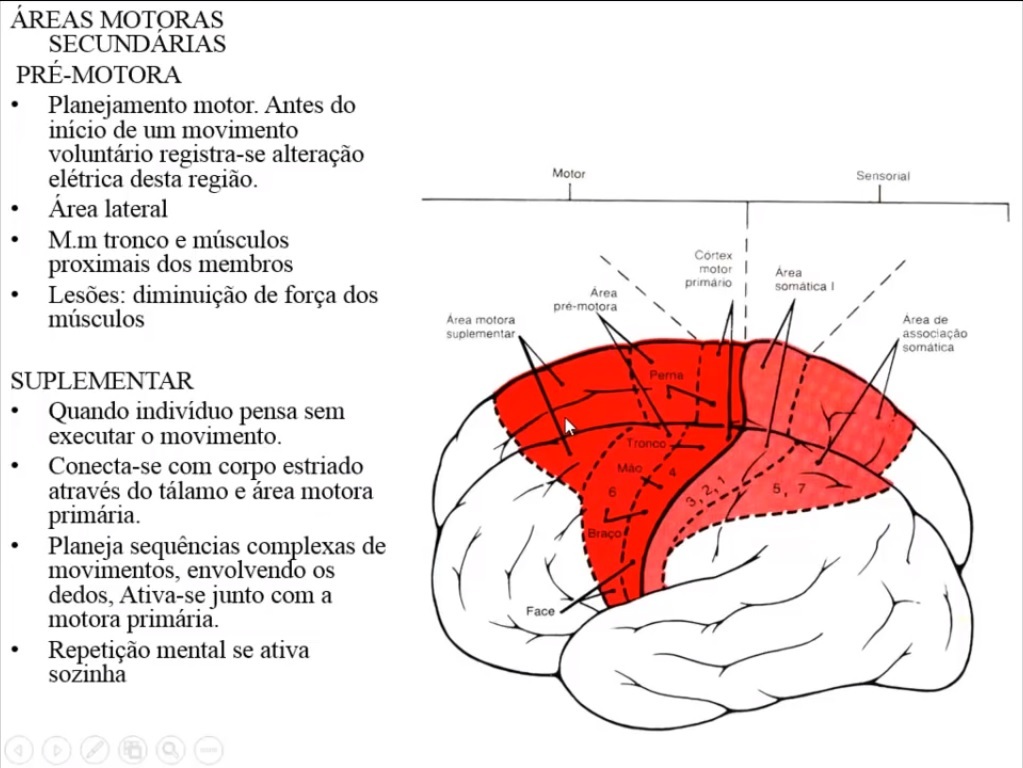 Na áreas motoras secundárias, Defina a área Pré-Motora