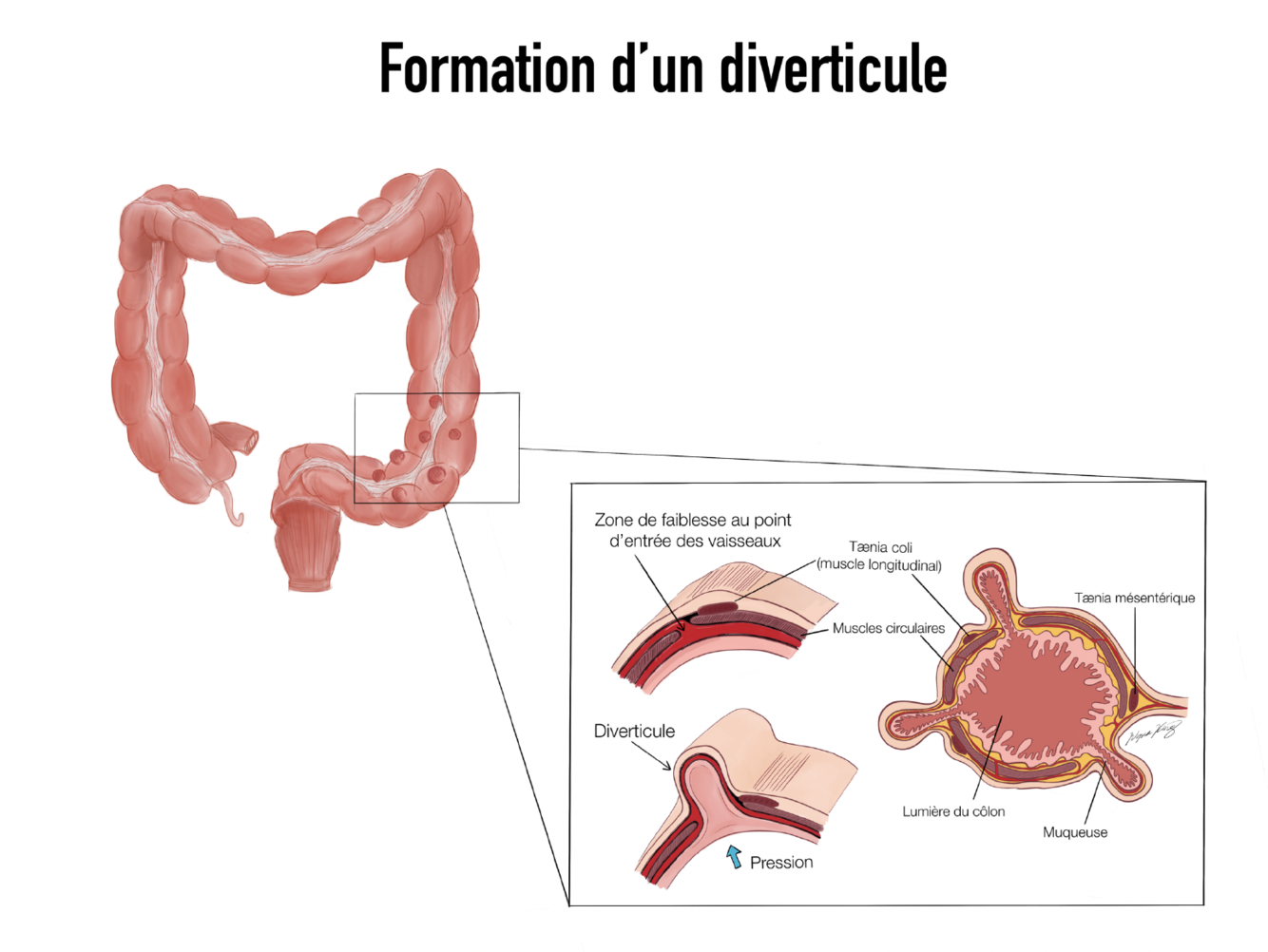 diverticulose colique - physiopatho et facteurs de risque : comment est-ce que les diverticules se forment? (4 étapes)