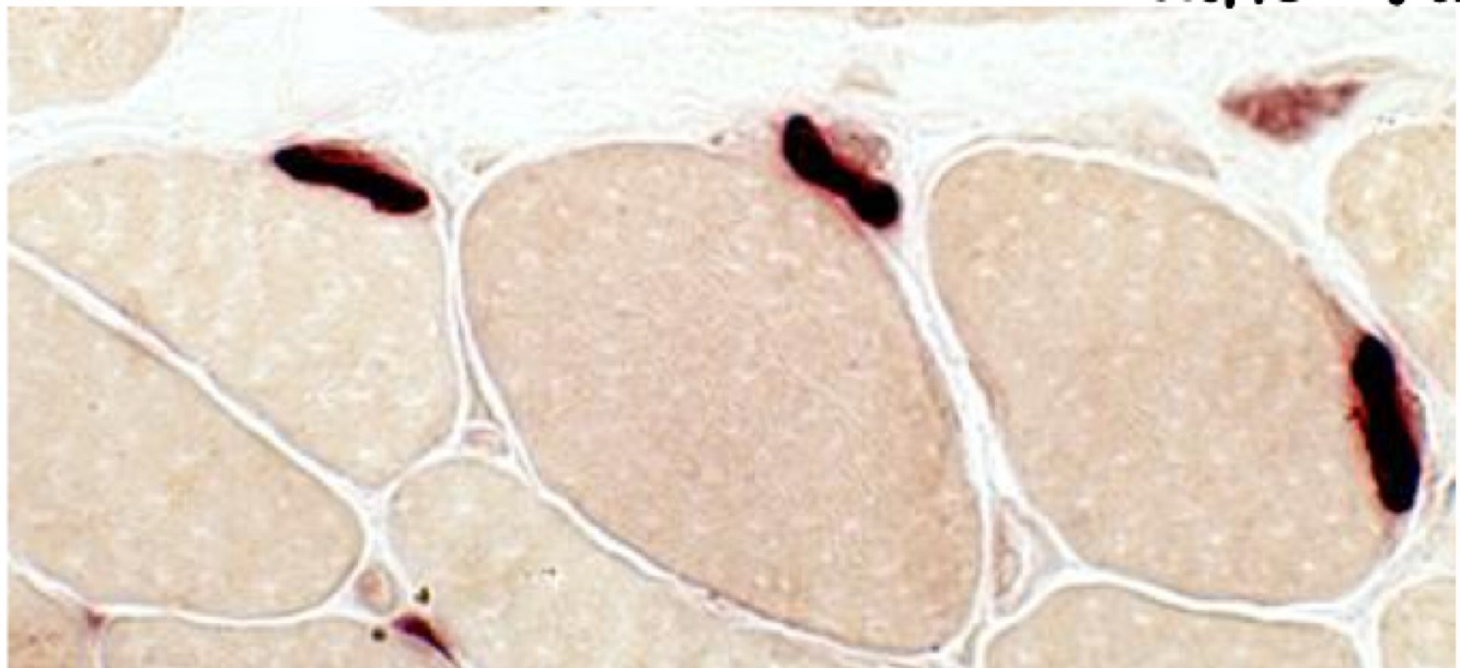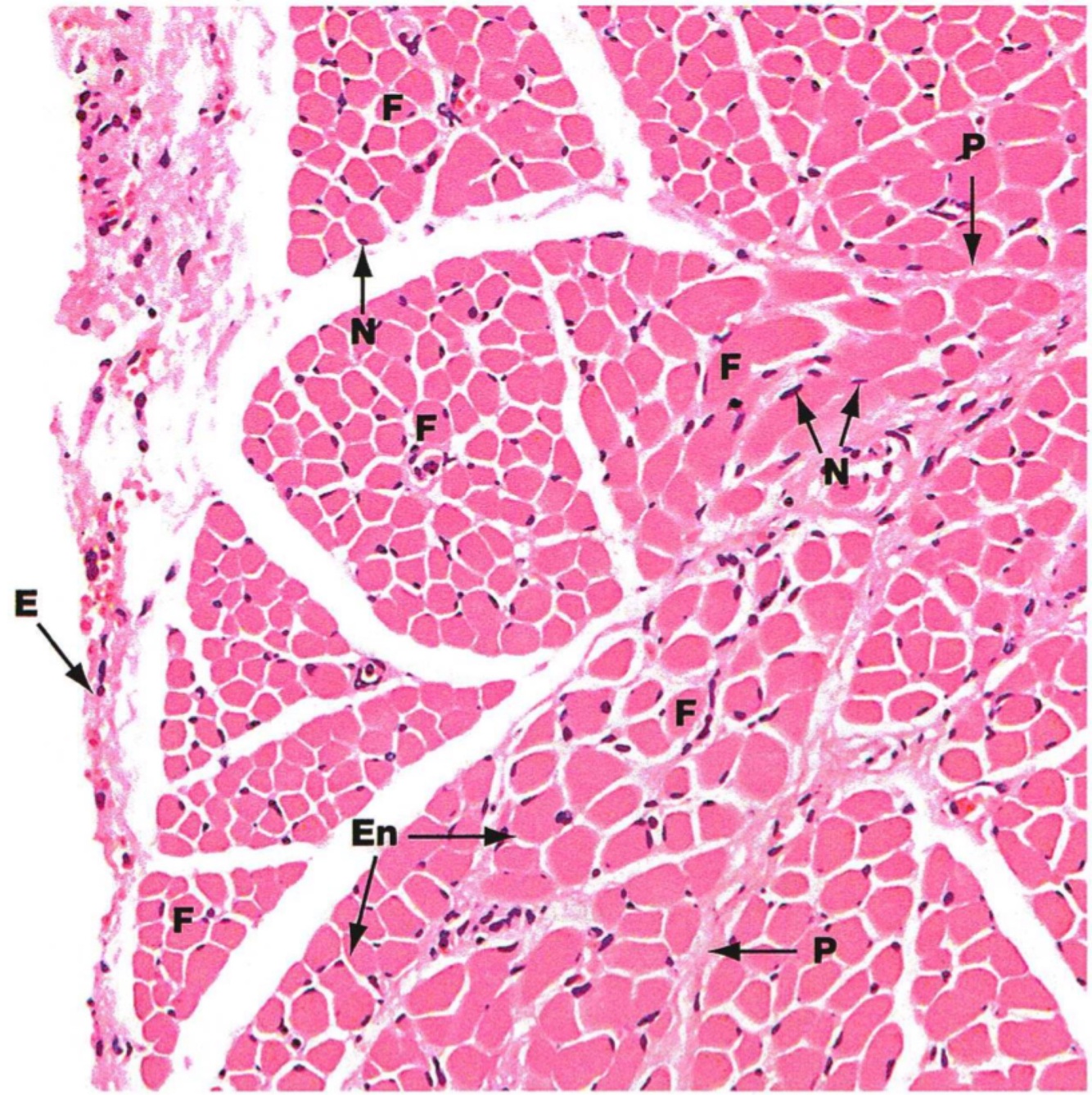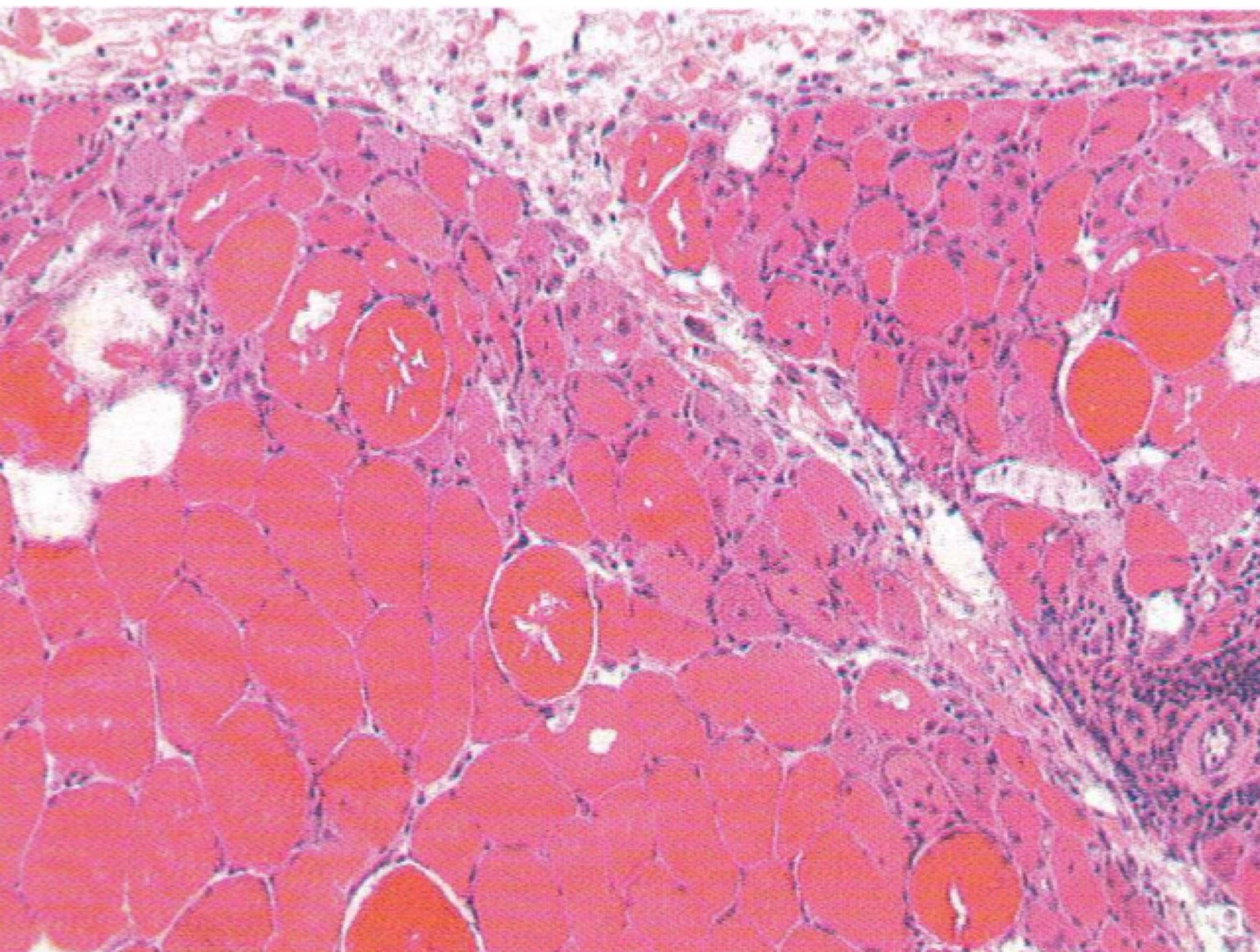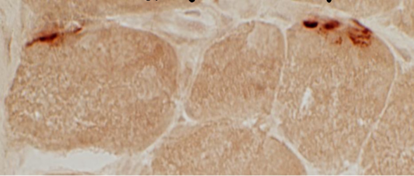 Tissu sain. Les taches foncés représentent les jonctions neuro musculaires