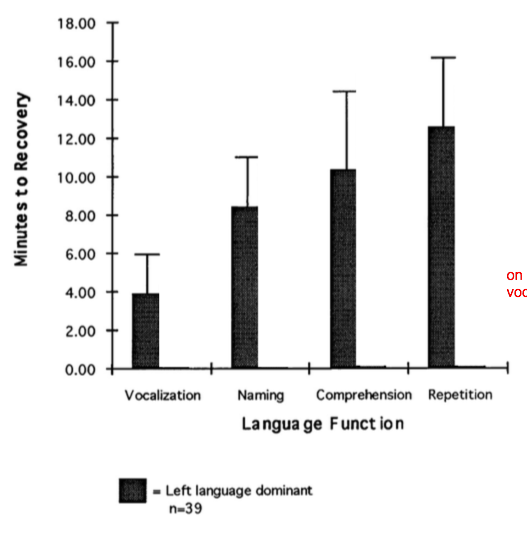 Récupération progressive de la parole après l’injection de barbiturique dans l’hémisphère dominant.