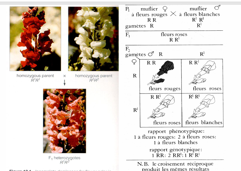 le rapport génotypique de la F2 n’est pas 3 : 1, mais bien 1 : 2 : 1