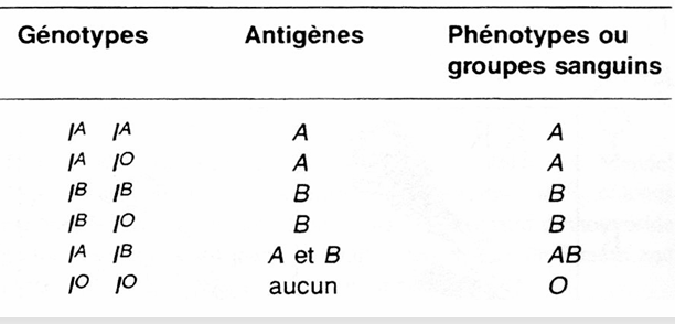 globules rouges des individus. La formation des ces antigènes dépend des 3 allèles (IA, IB et IO)