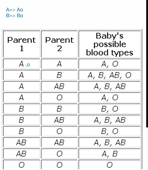 Ex: groupe sanguin ( exemple AB )