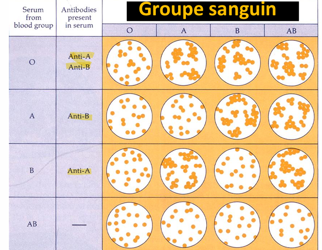 Les groupes sanguins du type A, B, O, sont déterminés par l’antigène présent sur la surface des